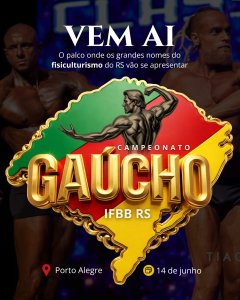 É com grande entusiasmo que a IFBB-RS convida você para o Campeonato Campeonato Gaúcho 2026, um evento imperdível para todos os atletas apaixonados por fisiculturismo! No dia 14 de Junho, em Porto Alegre – RS, será palco de um show de força, dedicação e superação.